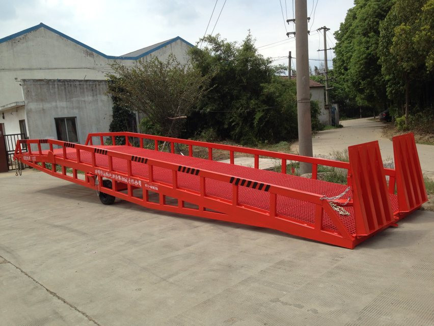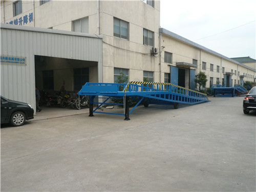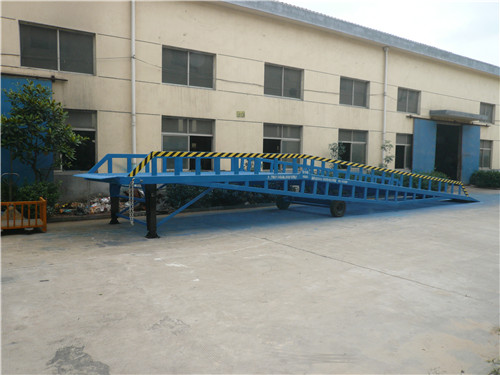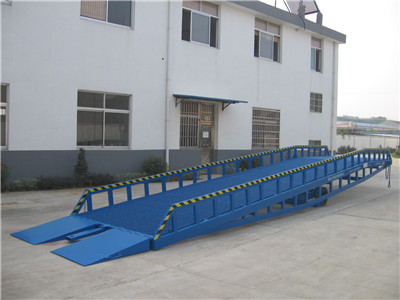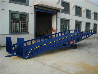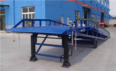 移動(dòng)式液壓登車(chē)橋是與叉車(chē)配合使用的貨物裝卸輔助設(shè)備,可根據(jù)汽車(chē)車(chē)廂的高低調(diào)節(jié)高度,叉車(chē)可以直接通過(guò)本設(shè)備駛?cè)胲?chē)廂內(nèi)